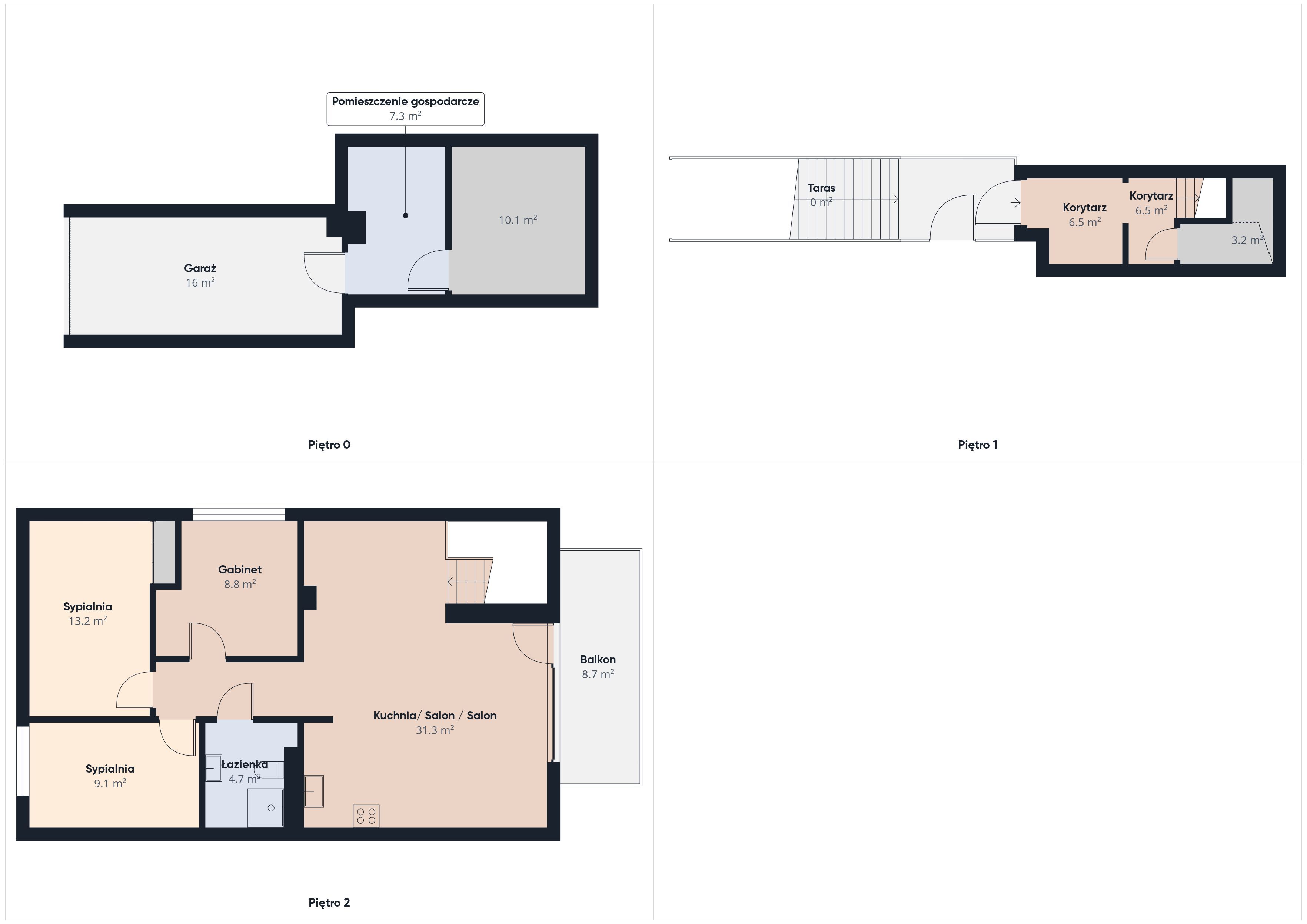 Piętro + półpiętro = 83,20 m2