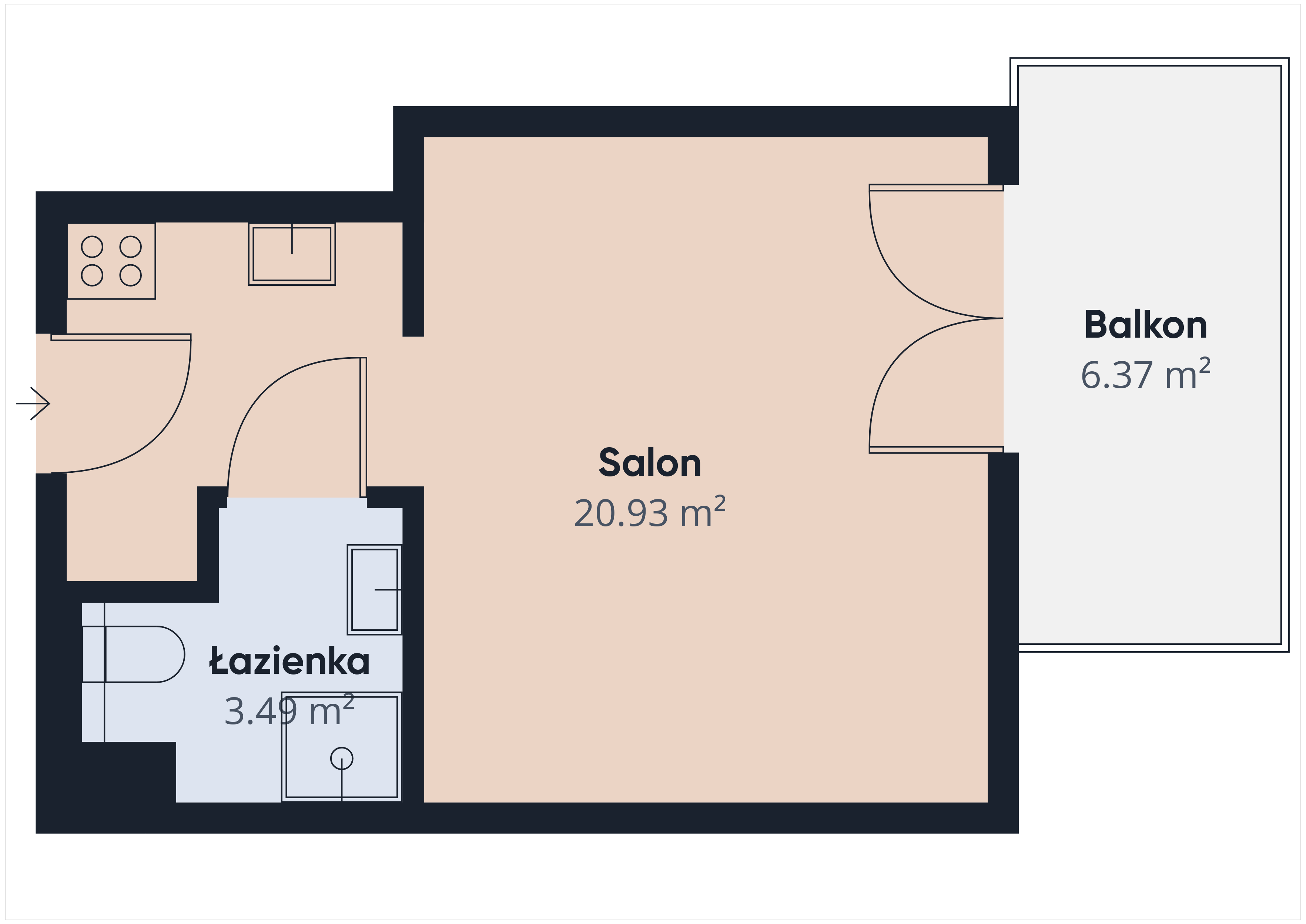 Układ: kawalerka, balkon, ekspozycja zachodnia