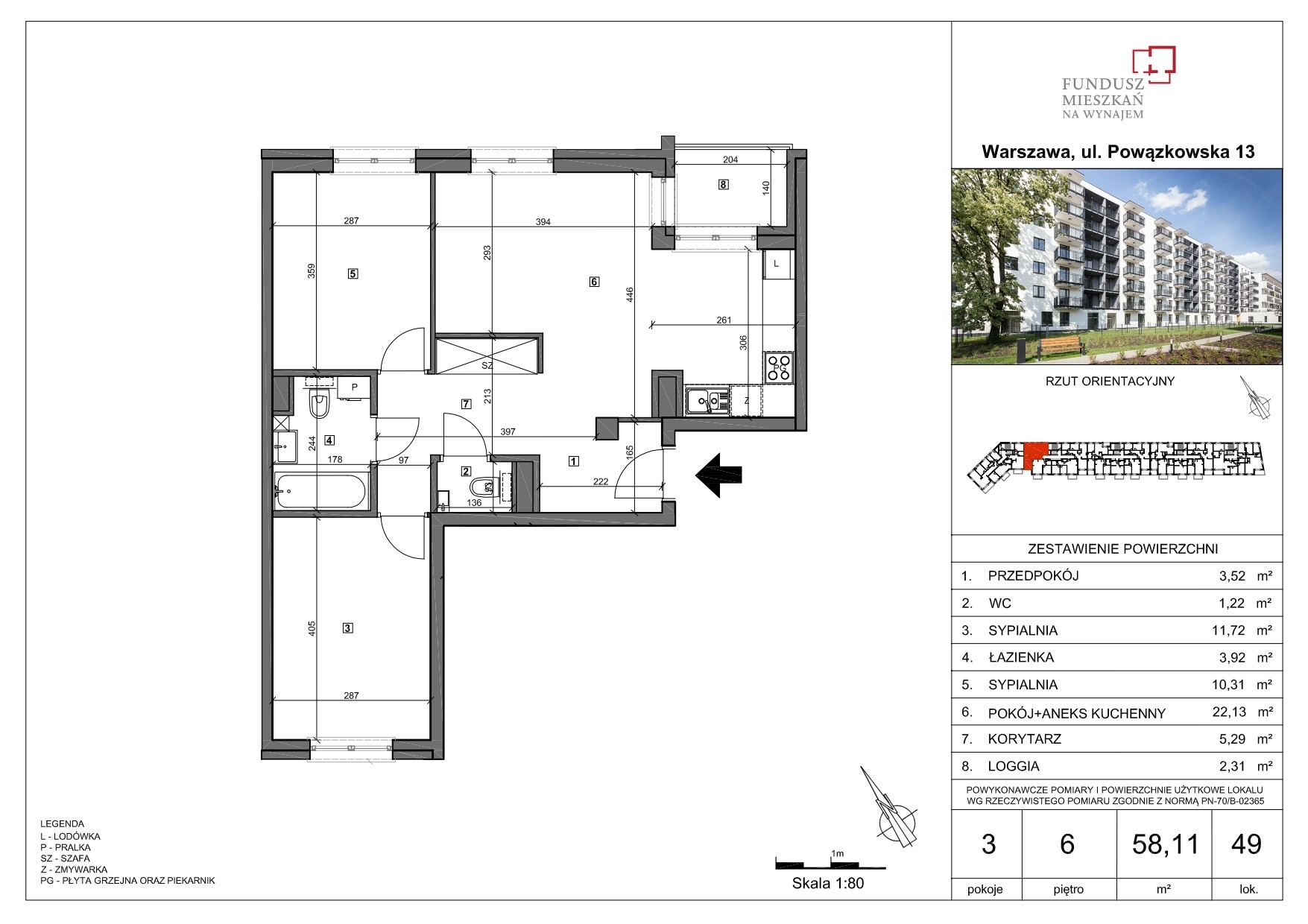 - Powierzchnia: 58.07 m2