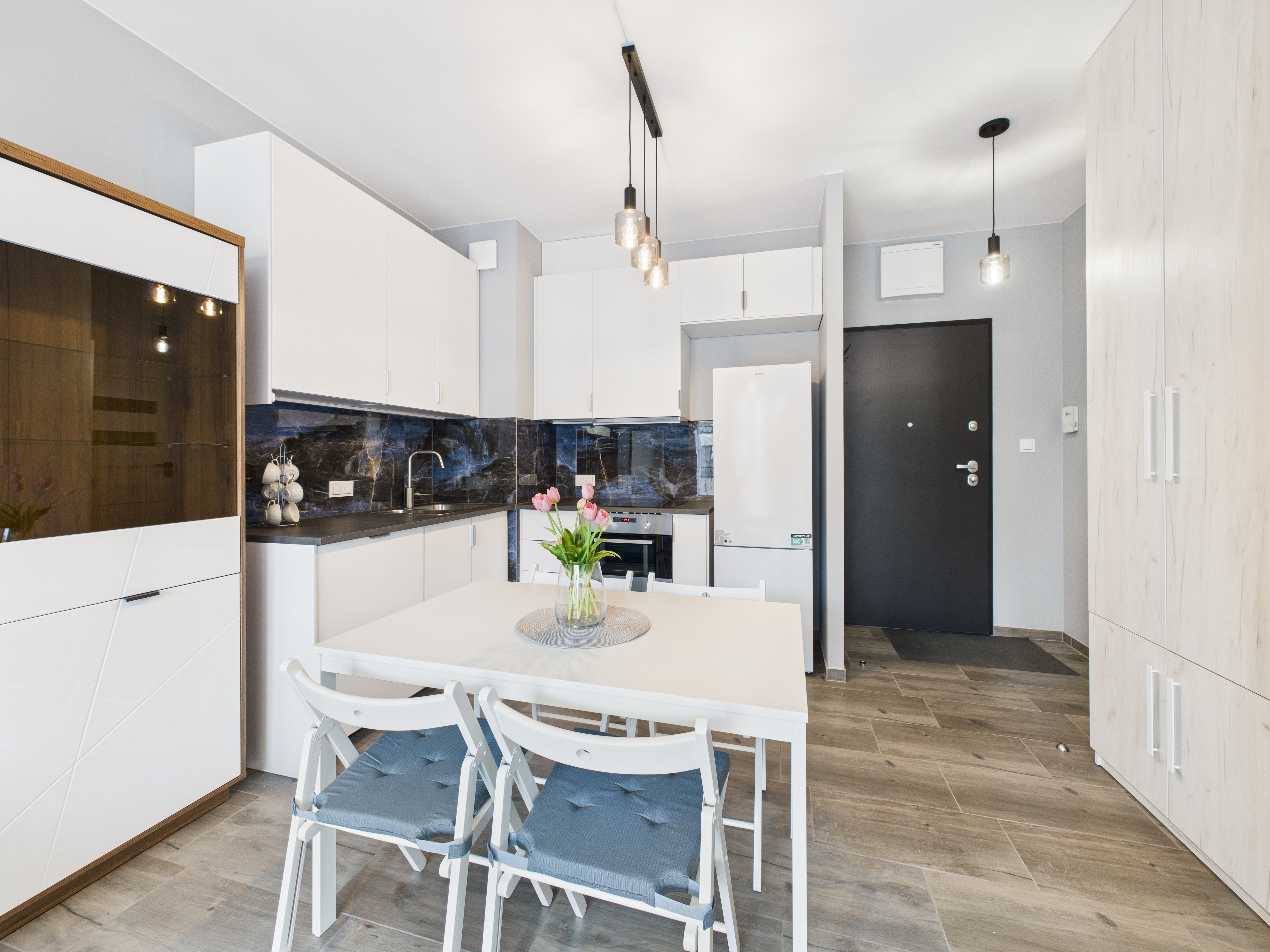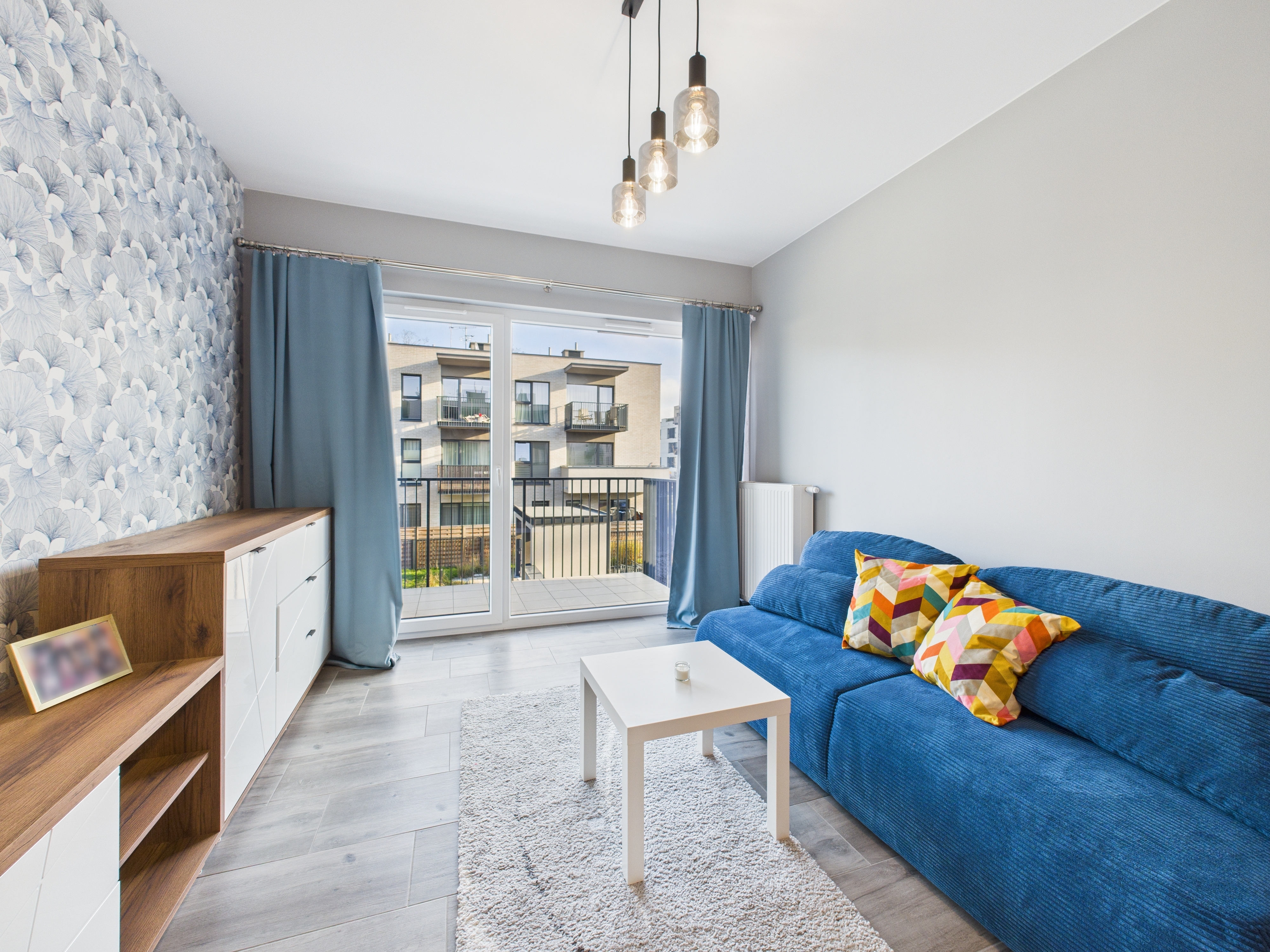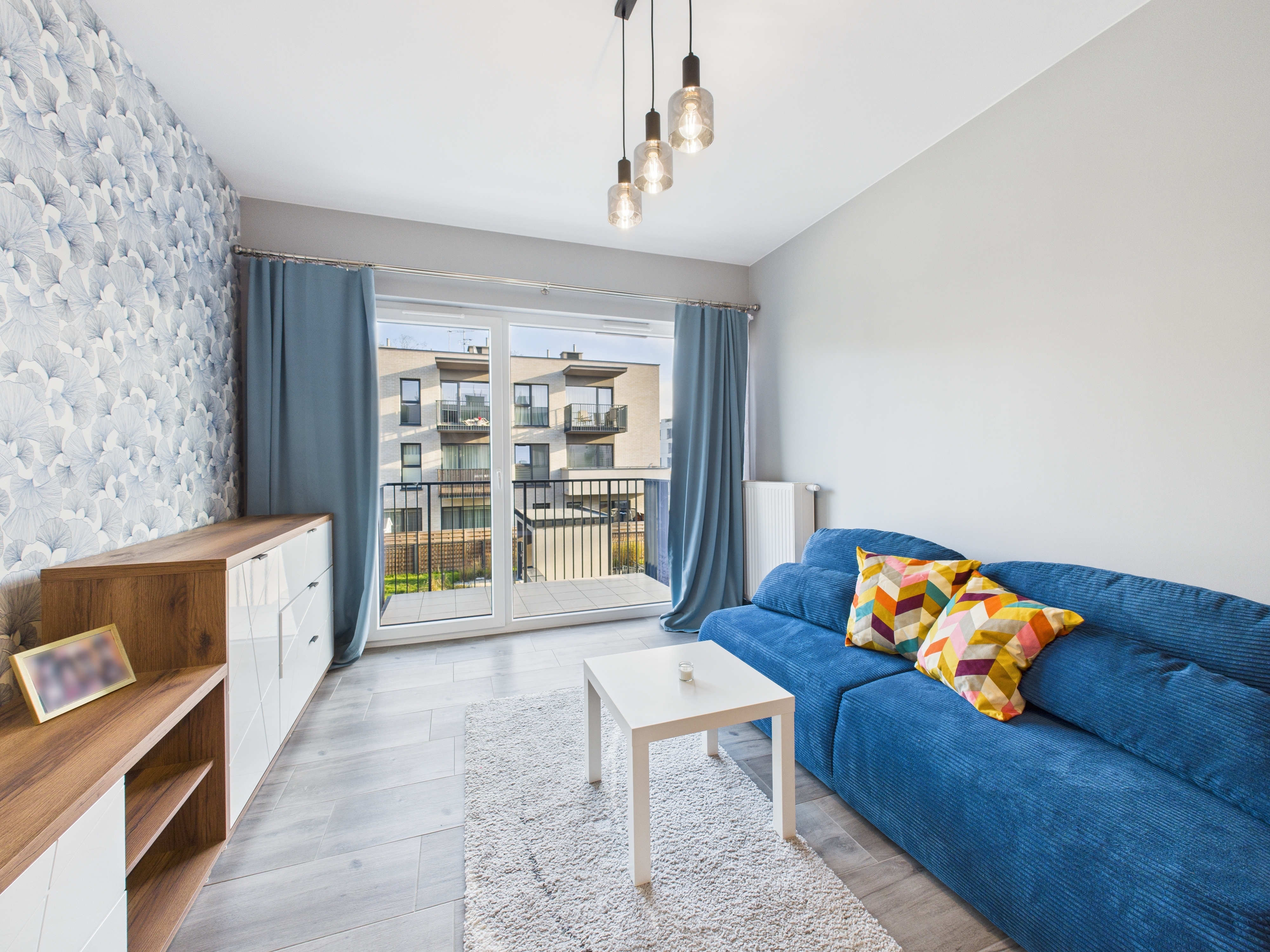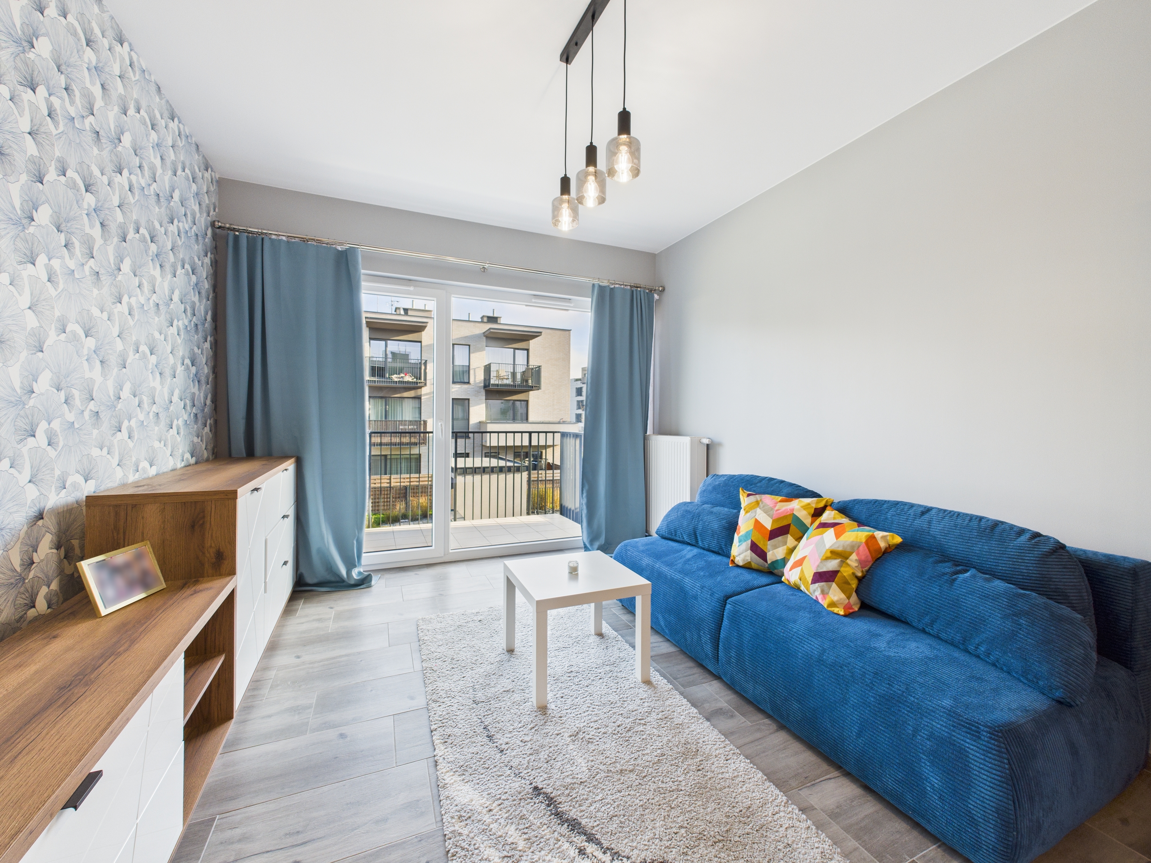 Mieszkanie wykończone w bardzo dobrym standardzie. W mieszkaniu spokojnie zmieści się biurko do pracy zdalnej. Na wyposażeniu odkurzacz, mop, szuszarka wolnostojąca do ubrań.