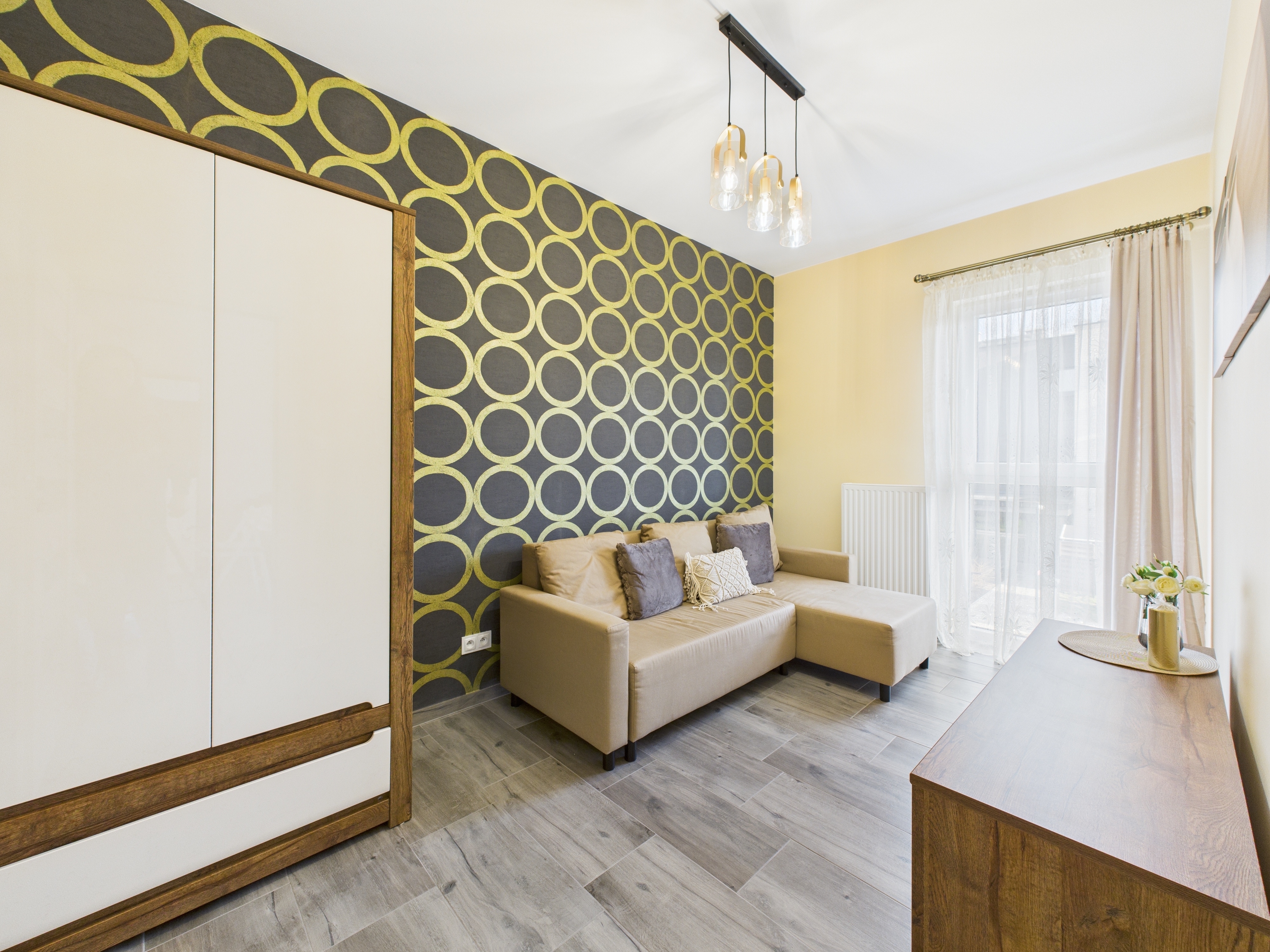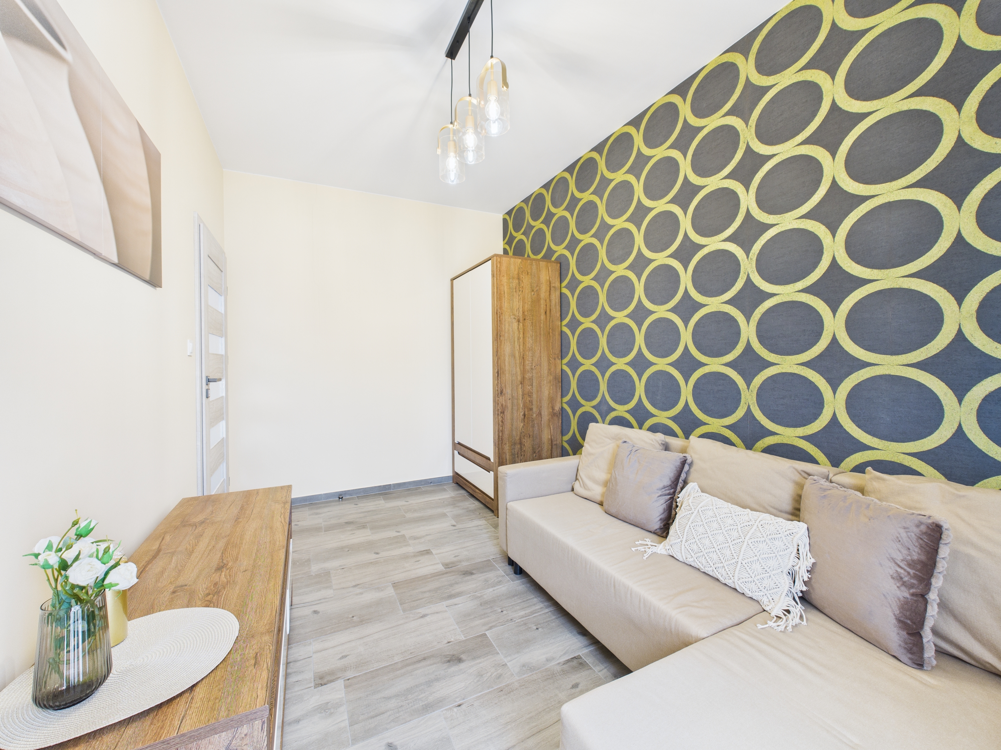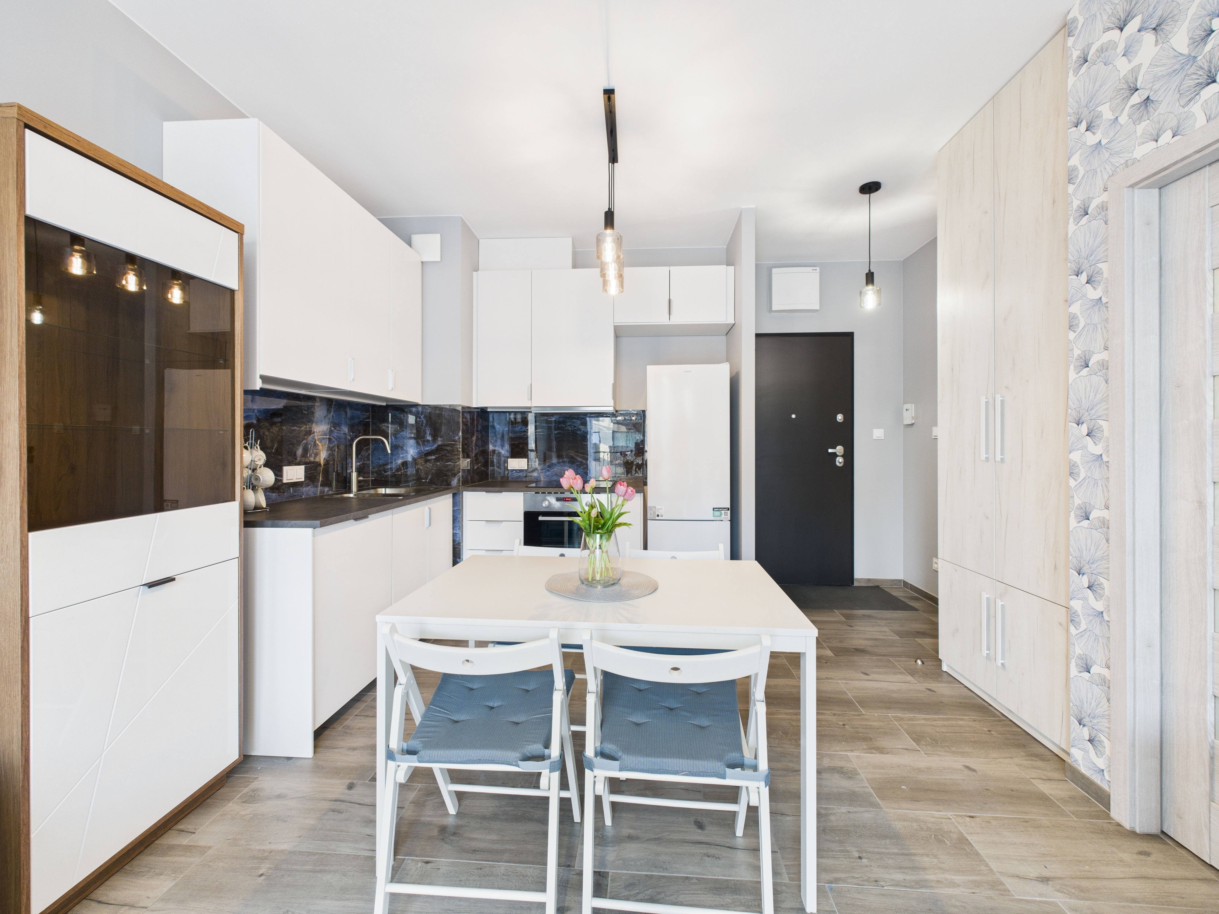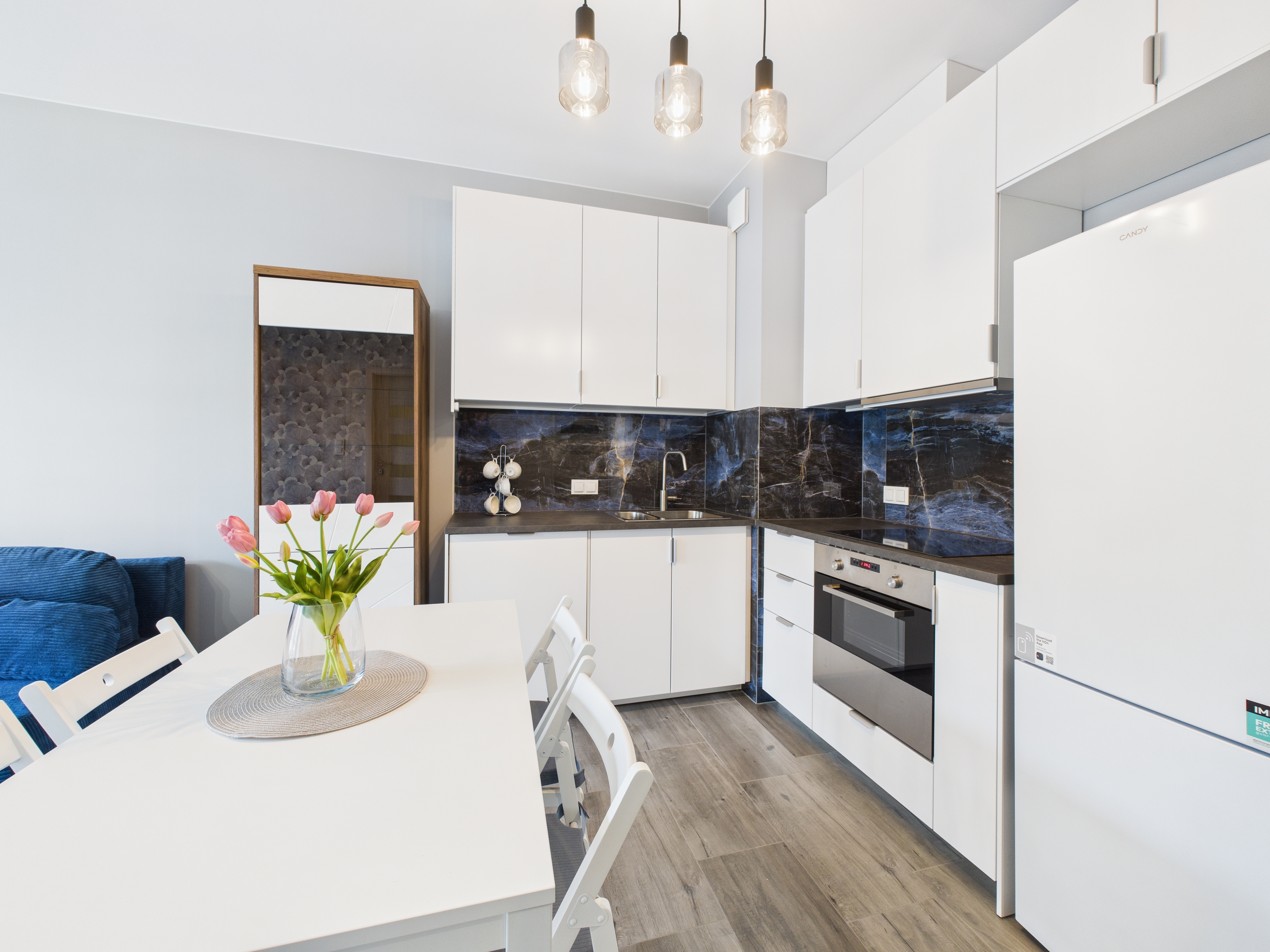 Mieszkanie wykończone w bardzo dobrym standardzie. W mieszkaniu spokojnie zmieści się biurko do pracy zdalnej. Na wyposażeniu odkurzacz, mop, szuszarka wolnostojąca do ubrań.