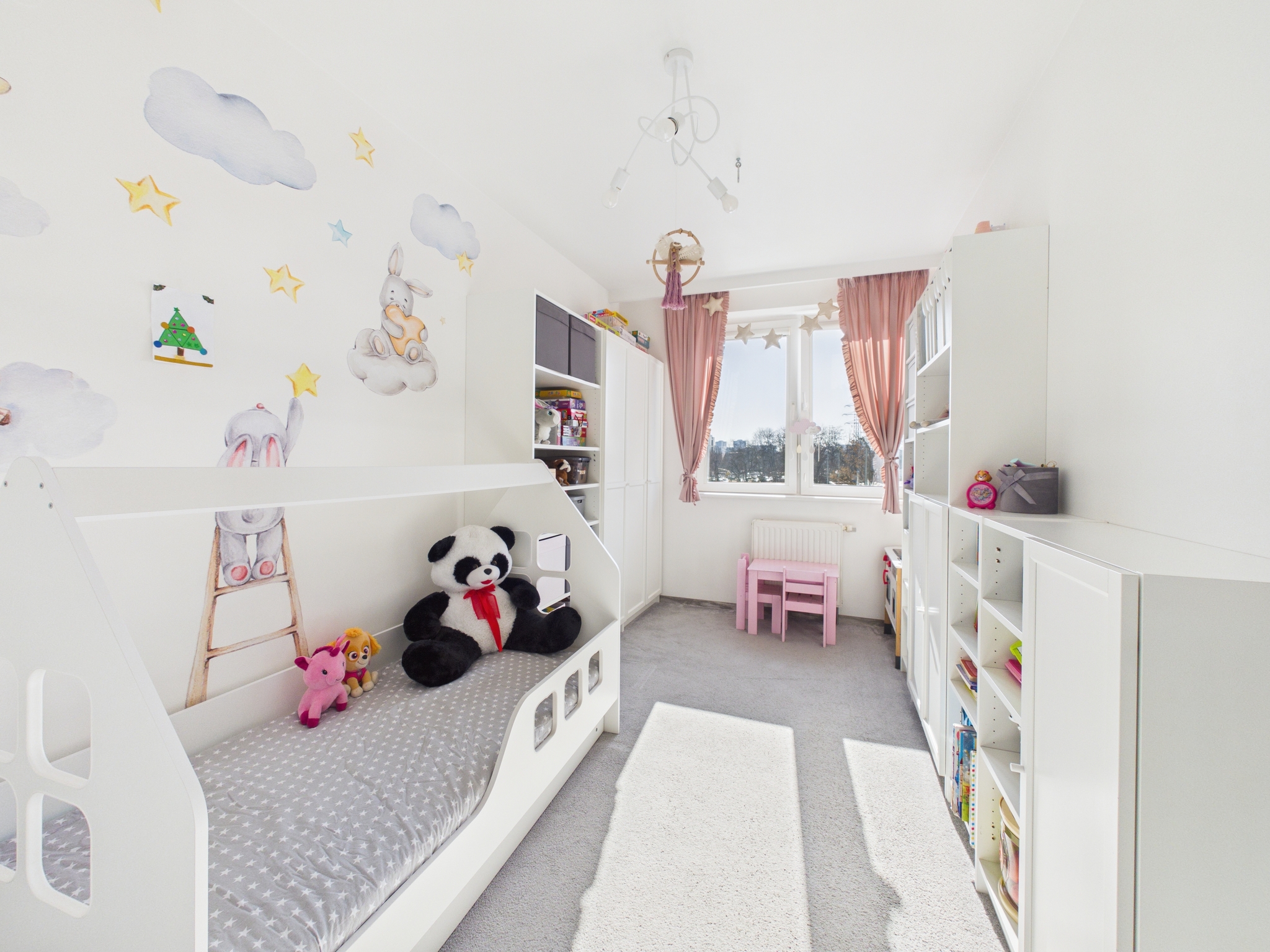 - Druga sypialnia (pokój dziecka): Jasny i przytulny pokój z meblami w zabudowie. Istnieje możliwość uzgodnienia ostatecznego wyposażenia tego pokoju.