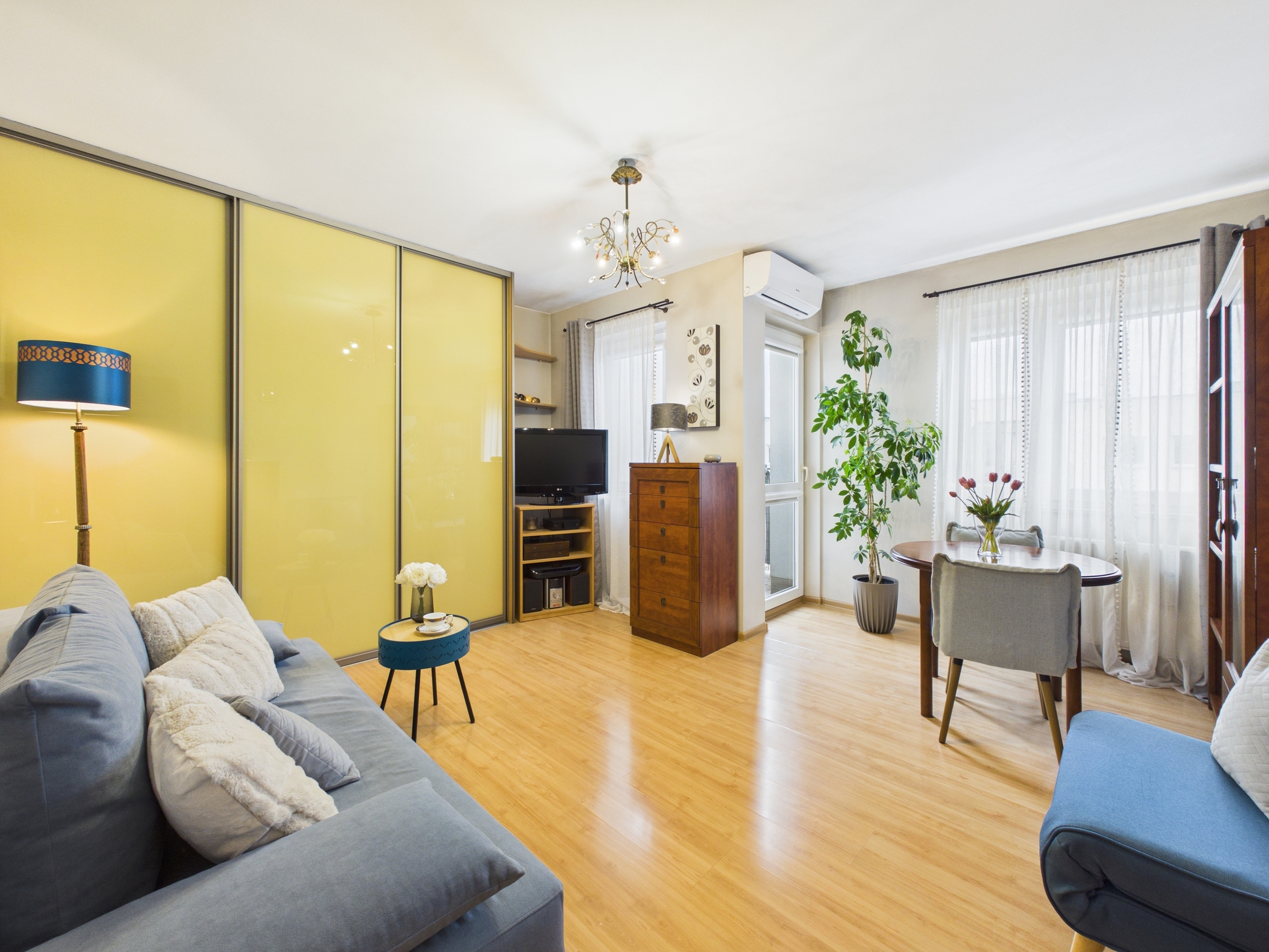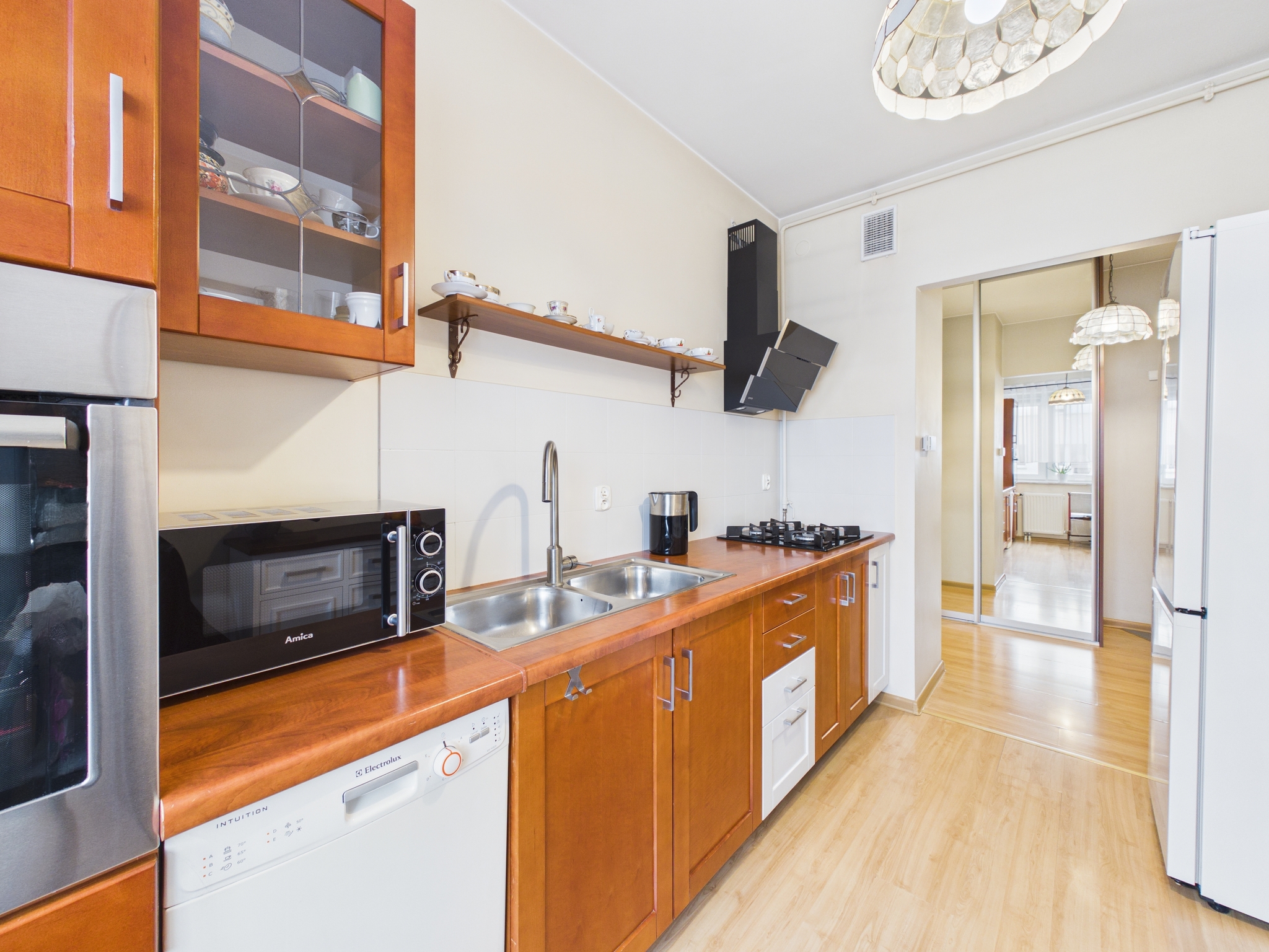 Mieszkanie sprzedawane bez umeblowania ruchomego widocznego na zdjęciach (zostaje zabudowa stała + AGD, bez lodówki).