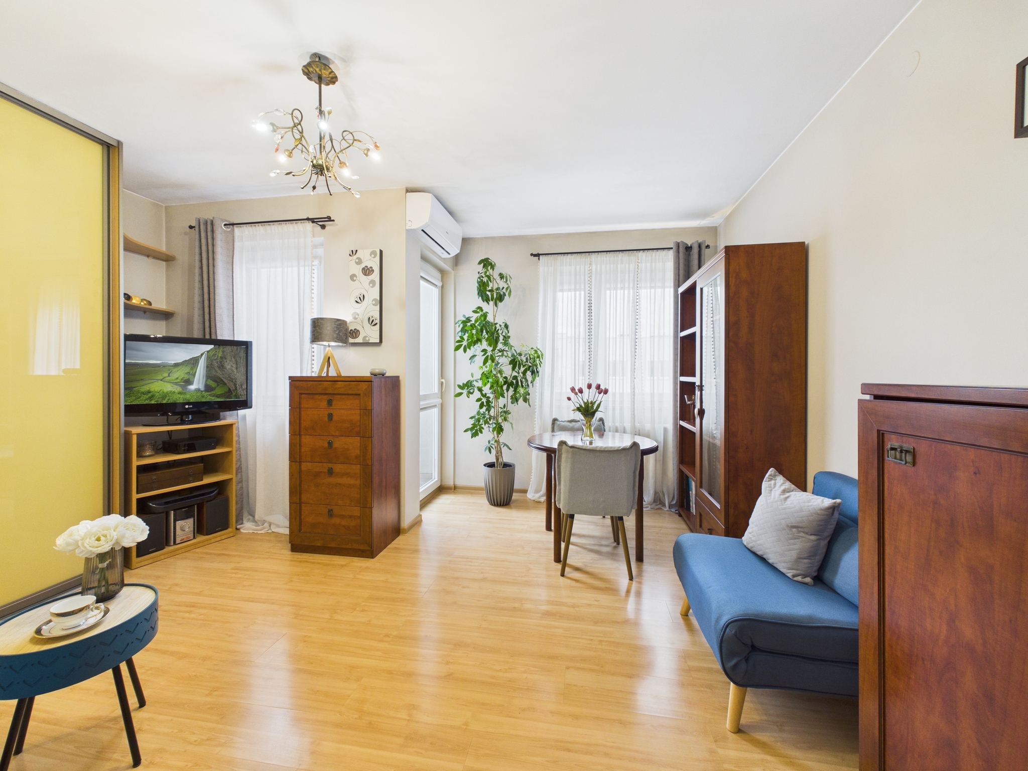 Na sprzedaż funkcjonalna kawalerka z opcją wydzielenia 2-go pokoju o powierzchni 35,8 m² + balkon, z piwnicą 3,2 m² i naziemnym miejscem postojowym.