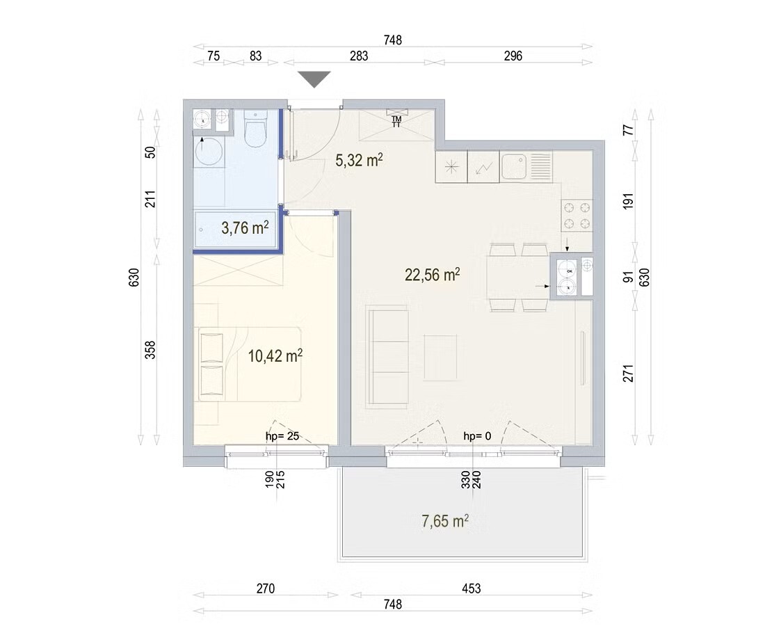 Metraż mieszkania po rzeczywistych pomiarach 42.39 m2.